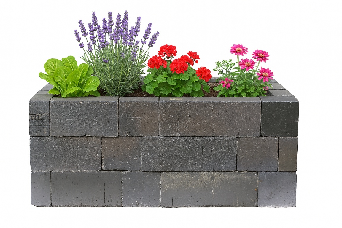 Hochbeet aus Klinker in der Ausführung schwarzbunt linear. Robust, wetterfest und schnell aufgebaut mit dem HelloBrick System.